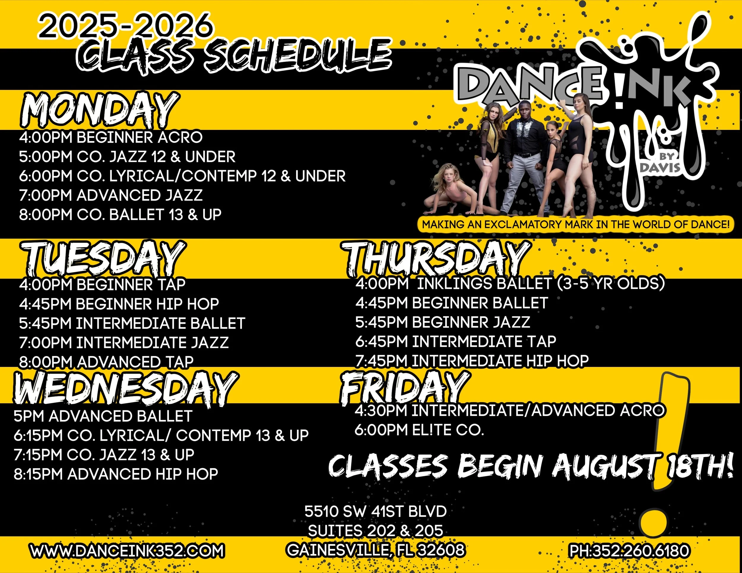 Dance !nk’s namesake was created with the professional and personal growth of each dancer in mind. Our mission is to challenge dancers to think about the value of their commitment to the arts and the lasting impression of what their talent may invoke in others. Like ink, we can never be erased. We believe that individual artists should feel free and confident enough to pen their own story, shine in their own spotlight, and eventually make a permanent, exclamatory mark in this world!